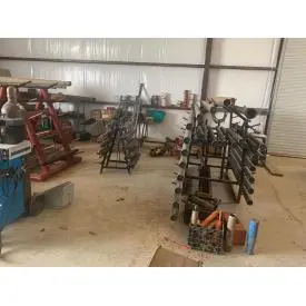 Misc in shop to include, Miller welder, shot blast machine, benches, large quantity hand and power tools, vises, racking, tanks, cabinets, small trailers, racking, etc.