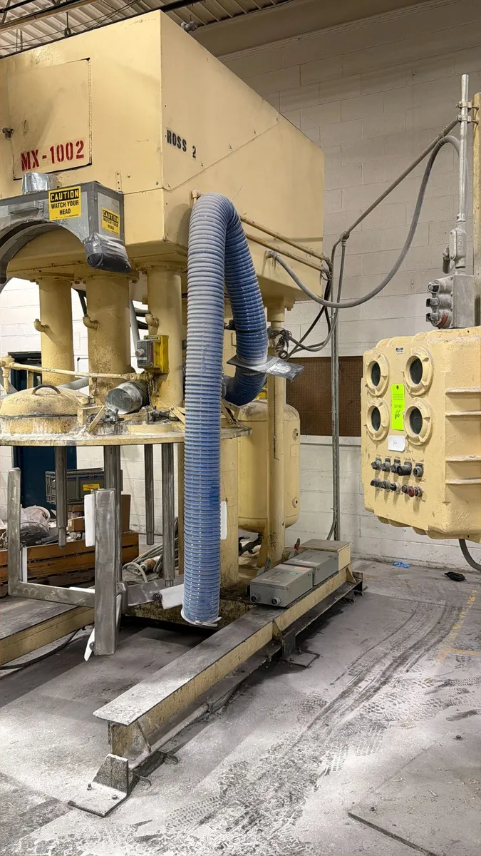 Ross Model PVM 300, 300 Gallon Stainless Steel , Triple Shaft, Hydraulic Vacuum Mixer, Explosion Proof Controls, Includes Hydraulic Unit, S/N 52178, NOTE: Includes (1) 300 Gallon Change Vat